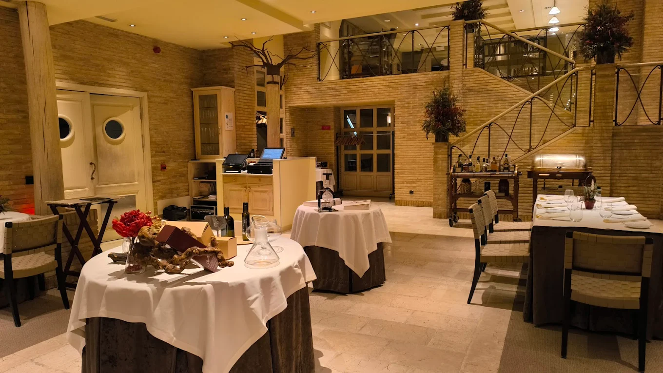 Entre las carnes no falta la paletilla de ternasco de Aragón IGP deshuesada. Otras referencias muy aragonesas son latón de La Fueva con col lombarda y pico de gallo, o solomillo de ternera del Pirineo aragonés. En el menú de mediodía se mantiene esa misma mirada aragonesa y el Menú Territorio es un recorrido gastronómico por los 25 años de historia del restaurante, acompañado de panes artesanos y de agua del manantial de Jaraba.