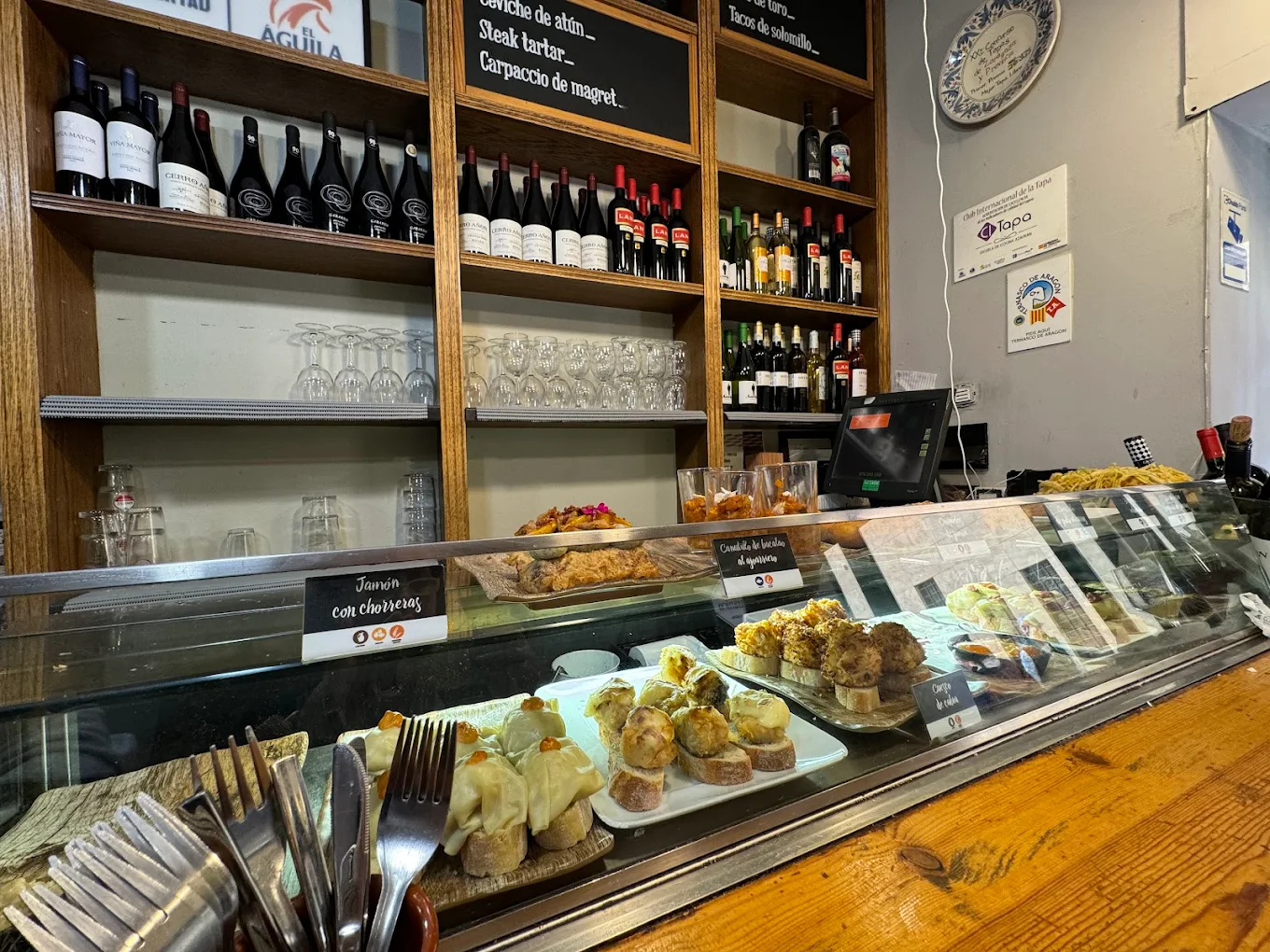 En su nueva etapa, el local parece más amplio. Hay taburetes altos y repisas nuevas junto a la pared para apoyar las tapas y la bebida. La sensación al entrar es de mucha calidez, sobre todo por la presencia de la madera, que tiene gran protagonismo en la decoración.