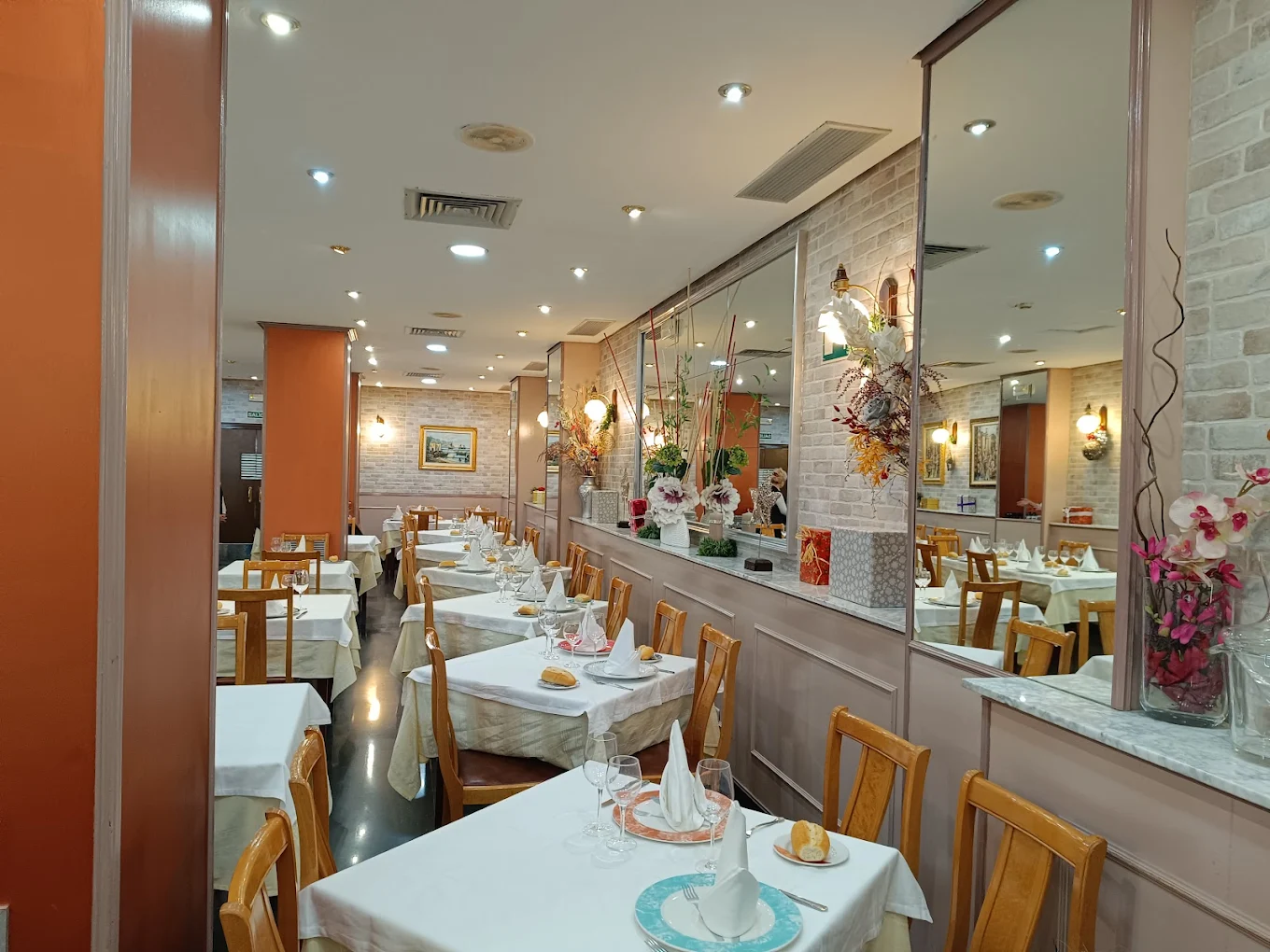La carta es amplia y tiene el mismo corte tradicional de los menús. Entre los entrantes, se puede disfrutar de pulpo a la gallega o de gambas de Huelva a la plancha. También se ofrecen varias ensaladas y dos de los platos más populares son el arroz con bogavante y las alcachofas a la andaluza con foie y salsa de Oporto.
