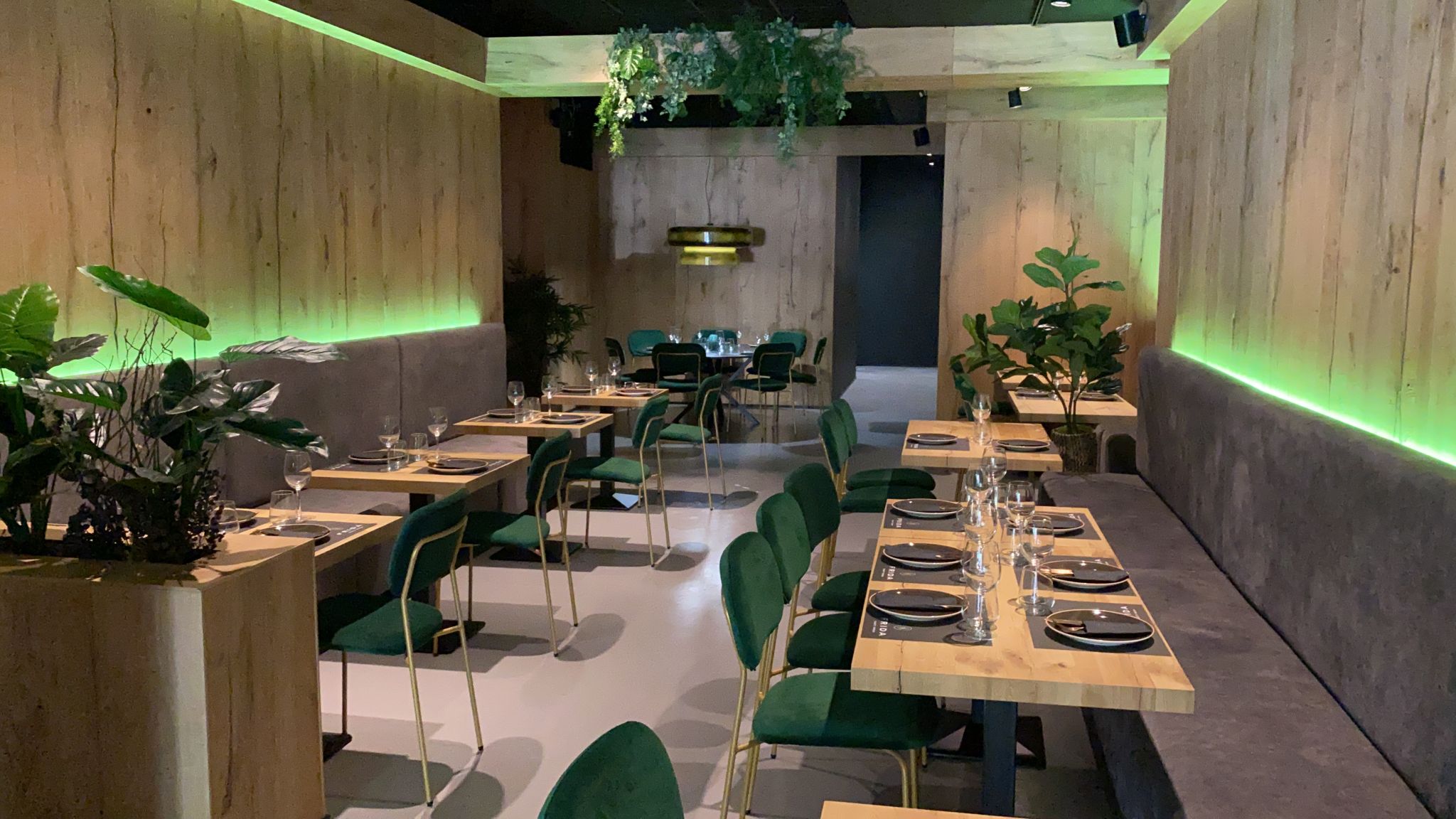 Frida Tasty Room es sofisticado y natural a la vez, gracias a la combinación de madera, plantas, sillas de terciopelo verde, lámparas de diseño retro… Todo ello va encaminado a crear una atmósfera diferente en la que degustar una carta donde destacan las carnes al corte.